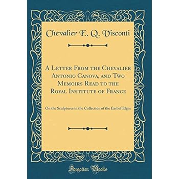 Excerpt from A Letter From the Chevalier Antonio Canova, and Two Memoirs Read to the Royal Institute of France: On the Sculptures in the Collection of the Earl of ElginC.-the frize (east end.) D. - Ditto (north side.) E. Ditto (west end.) f.-ditto (south side.) G. - Ditto (not ascertained.)About the PublisherForgotten Books publishes hundreds of thousands of rare and classic books. Find more at www.forgottenbooks.comThis book is a reproduction of an important historical work. Forgotten Books uses state-of-the-art technology to digitally reconstruct the work, preserving the original format whilst repairing imperfections present in the aged copy. In rare cases, an imperfection in the original, such as a blemish or missing page, may be replicated in our edition. We do, however, repair the vast majority of imperfections successfully; any imperfections that remain are intentionally left to preserve the state of such historical works.