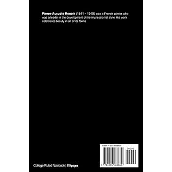Art Journal: Pierre-Auguste Renoir - Reading - Art Cover College Ruled Notebook | 110 Pages Wednesday, 8 January 2020 Edit Category: Books,Arts & Photography,Individual ArtistsArt Journal: Pierre-Auguste Renoir - Reading - Art Cover College Ruled Notebook | 110 Pages DetailsArt Journal - Pierre-Auguste Renoir Cover Premium College Ruled Notebook Matte Soft CoverSize - 6"x9" 110 Pages Reviews Share this post